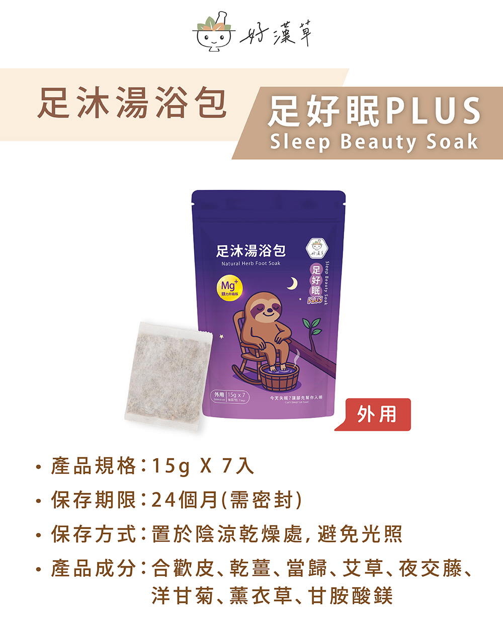 A:足好眠 PLUS 添加鎂元素,搭配草本香氣,讓睡前泡腳體驗更完整。