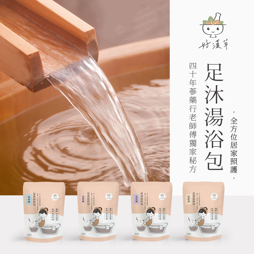 好漢草足沐湯浴包,由40多年蔘藥行老師傅精心調製而成。