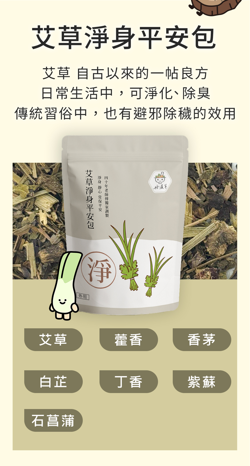 用好漢草的艾草淨身平安包,讓您的生活更加舒適和安心。小小一包,大大的功效,讓您在忙碌的生活中,也能找到一份寧靜和安全。