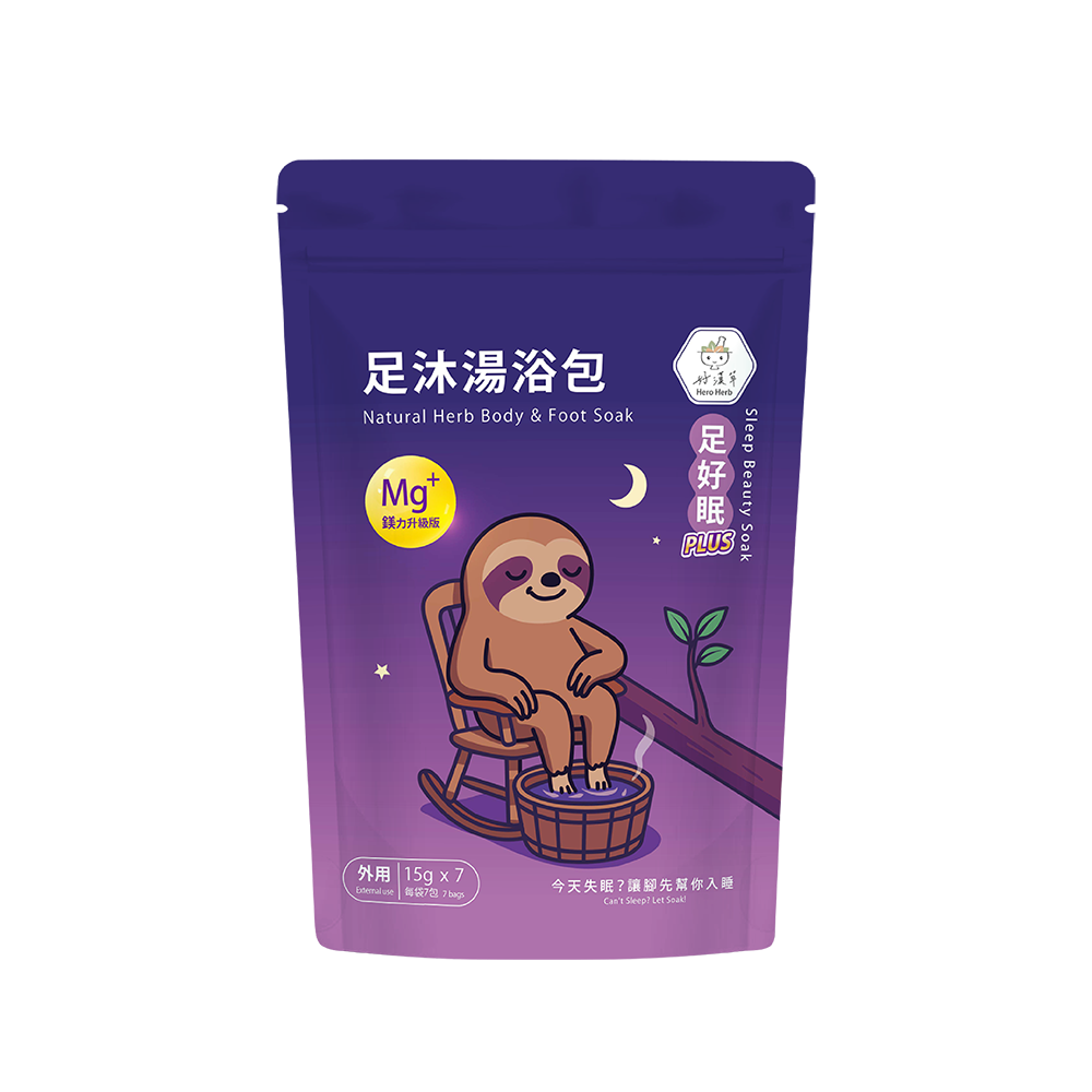 好漢草推出四款足沐湯浴包 PLUS:足好勇、足好輕、足好眠與足好暖。四款產品都以傳統草本與甘胺酸鎂為主要配方。